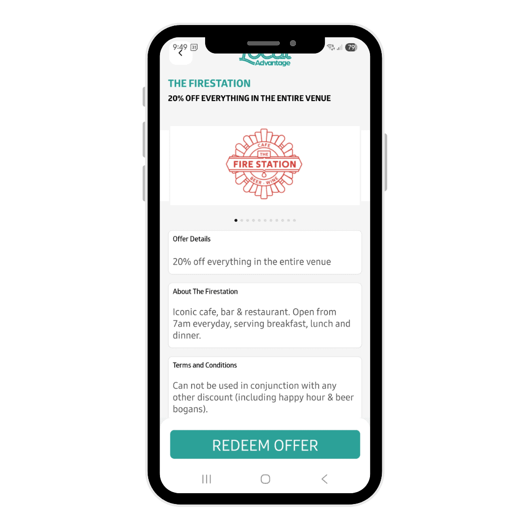 Select the business you need. Let the staff member know you have Local Advantage and present your app when paying – press Redeem Offer to receive your discount (or reveal the discount code for online offers).
