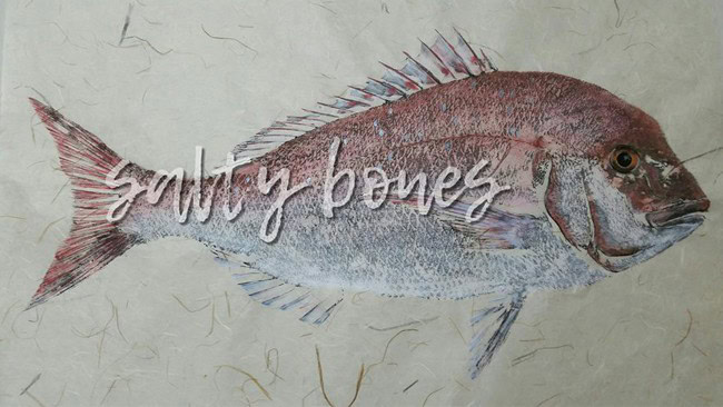 Salty Bones are original art pieces in the form of Gyotaku or “fish printing”. All of the fish that we print are locally, sustainably caught in Geographe Bay. Salty Bones pieces make a fantastic original gift idea for the avid fisherman or the ocean lover. Each piece is handmade with care and respect to the fish. You can view our work via our Facebook page or Instagram, or you can come and view at our home studio to choose the perfect piece for your home. We are based in Dunsborough, Western Australia.